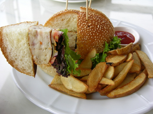 今天中午到桃園縣中壢市南方莊園點吃蟹肉大漢堡,,漢堡肉以新鮮蟹肉磨漿而成,,新鮮又好吃,,咬在嘴裡,,有一股蟹肉淡香,,搭配一口青菜、洋蔥和番茄,,超爽口的,,