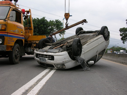 因閃躲一輛突然變換車道的前車,在瞬間緊急煞車時,發生四輪朝天