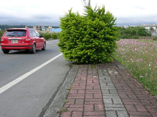 桃園縣大溪鎮慈康路長約800公尺人行道,由於人行道上的路樹越長越大,已嚴重影響人行道上的路人行走,迫使路人只好改走馬路,人車爭道,險象環生。
