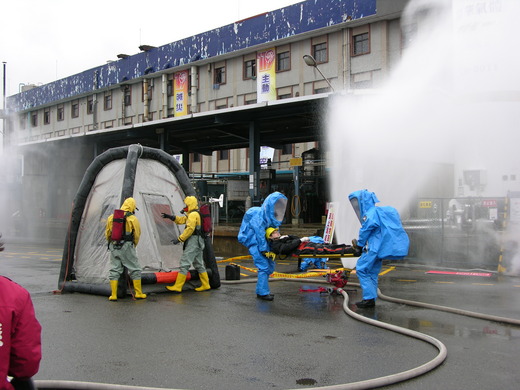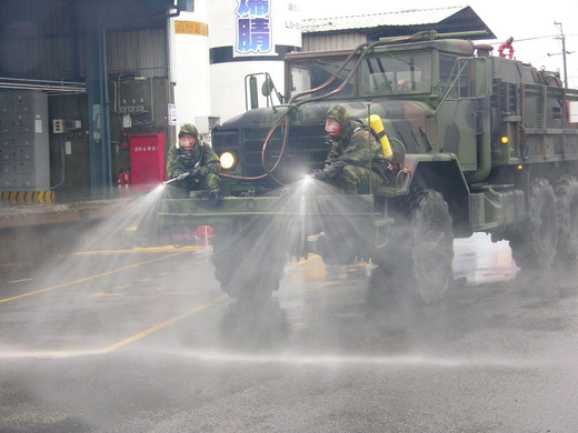 縣消防局特別協商陸軍第六軍團指揮部出動化學兵群及環保署北部環境毒災應變隊參與演練,以結合各單位的專業人才與器具,以期降低化學災害的損失及人員傷亡。