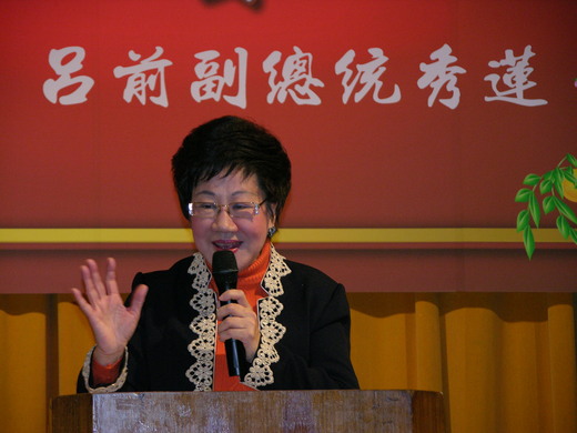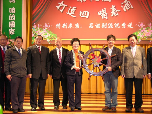 前副總統呂秀蓮出席桃園縣中壢市「南桃園打逗四(客家語;吃零嘴聊天)喝春酒」聯誼大會,臺灣心會負責主辦、邀約近千名桃園鄉親到場。