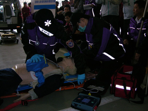 自動心肺復甦機捐贈儀式3月7日在大溪消防分隊舉行,消防局現場模擬一氧化碳中毒急救過程,示範舊有人工CPR心肺復甦術與自動心肺復甦機的急救過程與比較。