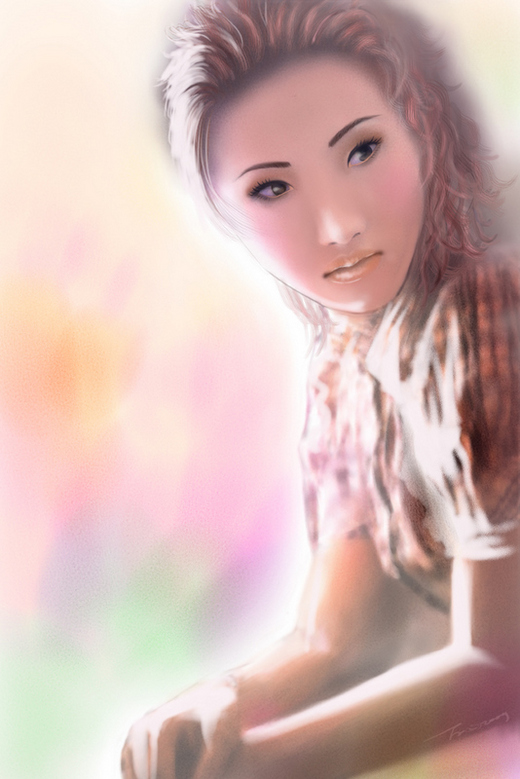 我的Stylist很可愛,技術優,每年赴國外交流技術與學習,自己做老闆,帶著小團隊,悠遊在大樓內巷弄的小天地,自在工作,令人羨慕。看著她的隊伍認真拍攝的宣傳照,每個人都很講究自己要表達的造型。我以輕輕柔柔質感,畫一張逆光的神韻,高光強調出時髦的現代感,白,佔據了視覺的焦點,很適合水彩的調子,五顏多色的渲染,有甜甜的味道,把生活的清悠融入其中,專業造型師氣質的自信與要求,表露著她的理想與事業的平衡,有強烈的企圖卻也甘之如飴。