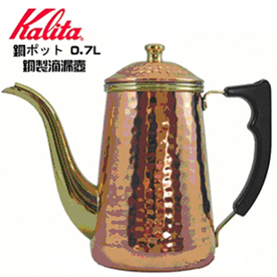 玩咖啡的人,選項中有一把自己喜歡的手沖壺,做為隨身的工具,為生活增添一股平靜中過著時尚日子的感覺,是一件好開始的序曲。一只1.32錢的小黃金戒子,換一把手工敲出的銅壺,散發著美麗的金屬光澤,價值更甚於黃金,儲存生活,不如現在鮮活。Kalita不愧是製造手沖壺的老手,握把對平衡度的講究,拿在手裡,令人不禁躍躍欲試。