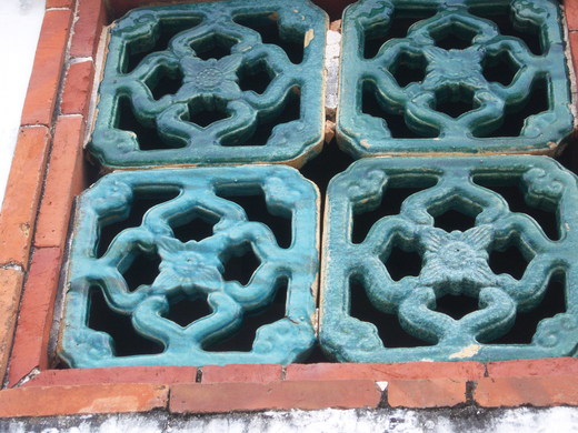 (`三)花窗~形似一朵花意指,四季如春,事事如意,(在四方框的四角落有蝙蝠之雕刻)意~