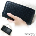 經典黑羊皮編織加大單拉鏈手拿長夾包款(可置6吋螢幕手機)