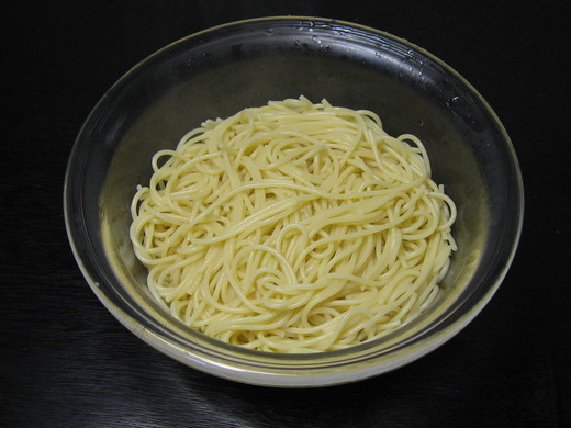第三,煮好之後將滾水濾出,此時加入橄欖油或奶油,讓麵條不會糾結在一起。