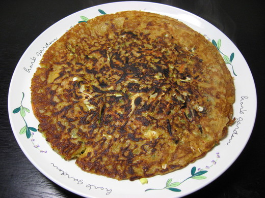 那個攝影的朋友來時,聽到要做什錦燒,問我能不能給他也試一試。他想要煎成橢圓形,結果真的是橢圓形,橢圓形比圓形還難耶。