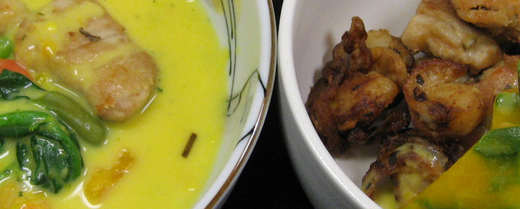 其實如果將金瓜分成兩部分,先放一部分下去煮,隔一段時間後再放另一個部分,煮比較久的會溶於湯汁之中,後來放的金瓜會保持形狀與纖維。這樣湯會看起來更有料。