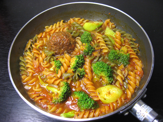 今天是用加入蔬菜的Minute Pasta (短型小通心粉),增加顏色的變化。
