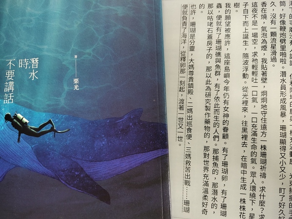2020年,《潛水時不要講話》出版了,我迫不及待買了電子書閱讀,很喜歡,又買了紙本書收藏,想著哪天見面時索取簽名。疫情期間,諸事收斂;過了許久,架上的書起了黃斑,還沒機會見到作者,2025年,新版推出。