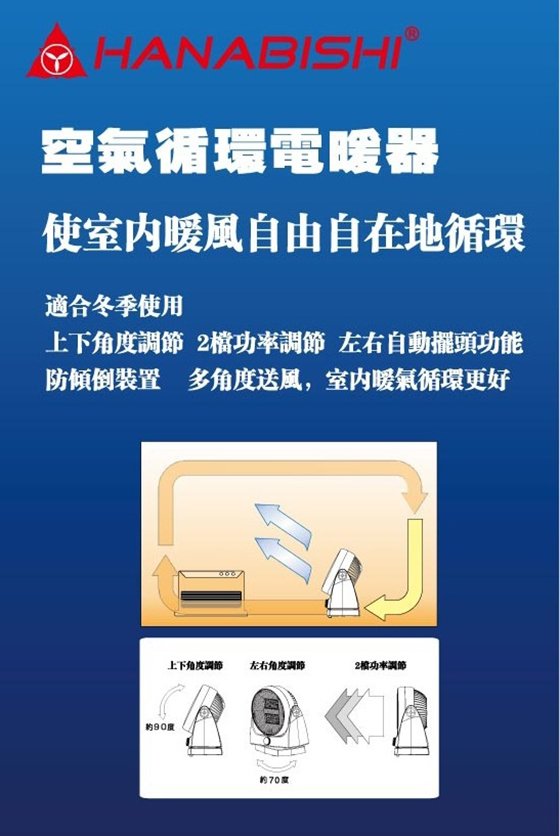 正面迎面而來的暖風讓你覺得悶悶粘粘的不舒服嗎?可向上90度出風角度,讓暖風更為廣角,家裡處處都溫暖!