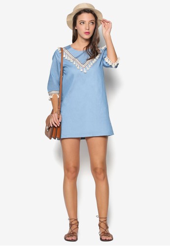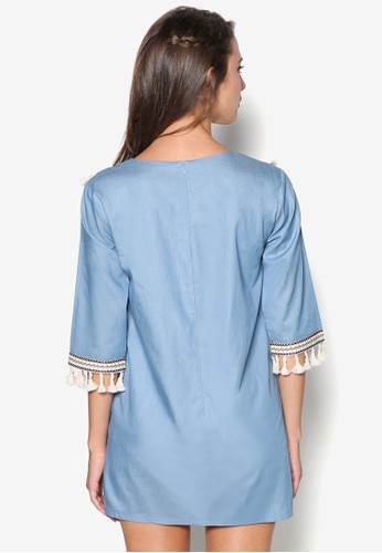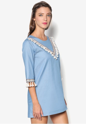 購買的網址在這裡---zalora心得>流蘇丹寧直筒連身裙, 服飾, 夏日洋裝
