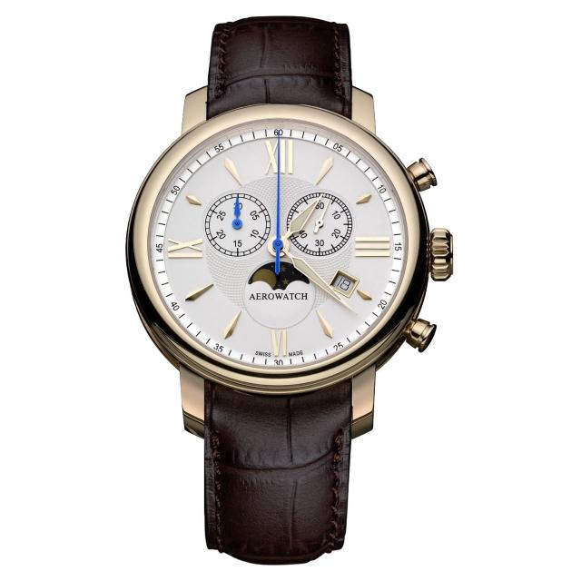 AEROWATCH 瑞士百年工藝傳承品牌搭載原廠瑞士石英機芯,經典藝術之作!以注重專業以及簡約品味,創造不凡精品質感時尚色系設計,展現柔和優雅魅力日期顯示視窗,三眼計時碼表功能搭載藍寶石水晶鏡面,316L不鏽鋼錶殼材質獻給獨立自信的都會專業人士,卓越印象深刻