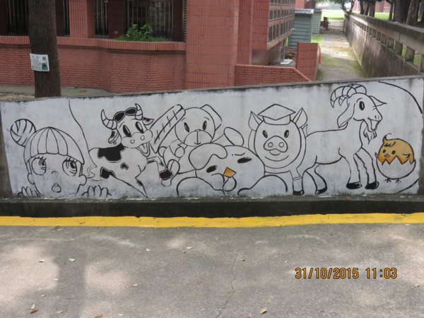 隨意走在校園,由兒時的鄰居現在附中教職員陪著,一邊聊著往事,相思樹到哪兒去了?小水圳、兩旁的檸檬桉、白千層當然也不見了,兒時到處拾檢相思豆,到水圳抓魚,剝白千層的皮,到防空洞躲迷藏,元宵提燈籠。到農地控窯烤蕃薯,到加工廠替布袋戲偶上色。接著走到牧場,那些古錐的牛、羊,培育中的花草樹木已從農作轉為觀賞性植栽。