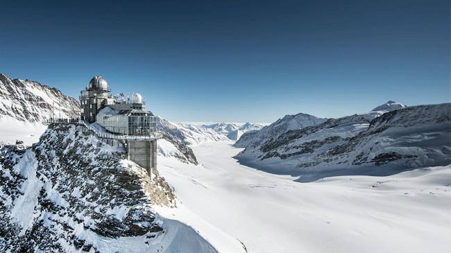 至少女峰(日本遊客心中的瑞士第一名山):茵特拉肯出發,搭乘齒輪登山火車少女峰鐵路通往山脈的中心地帶,並攀上歐洲最高的火車站(海拔3454公尺),沿線可以觀賞到雄偉的艾格峰(Eiger)、僧侶峰(Mönch)和少女峰的三峰鼎立連綿景色,還有阿爾卑斯山最長的冰河景色(聯合國教科文組織名下的世界遺產)。.