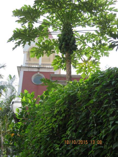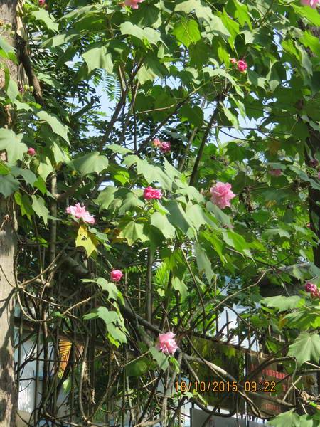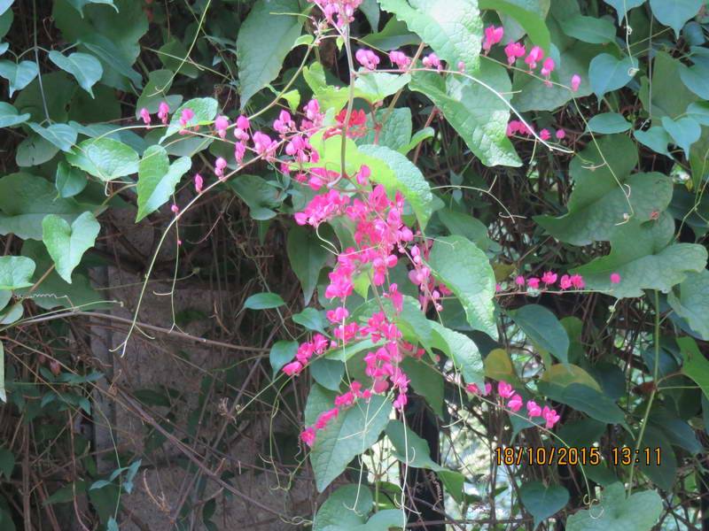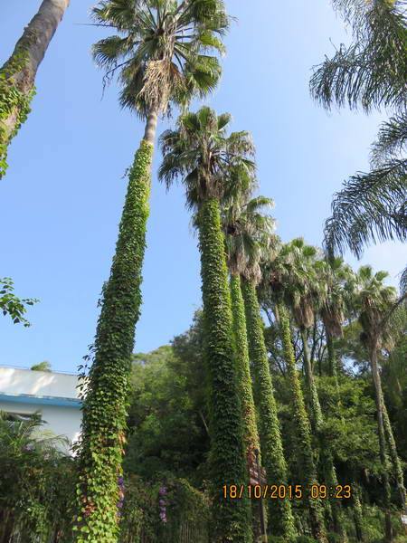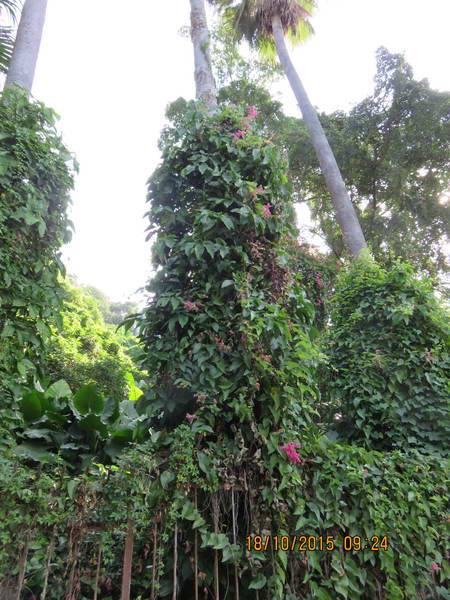 爬藤類植物又蔓生在樹幹及頹圮的牆邊
