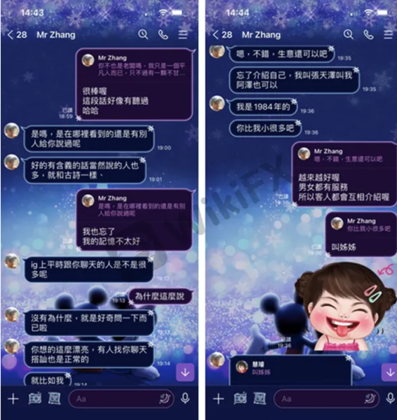 根據受害者的回憶,她是在社群網站IG上被一位暱稱為「Mr Zhang」的網友搭訕,由於兩人年紀相仿,聊起天來很有話題,彼此也願意有更進一步認識,過沒多久便與對方發展為情侶關係,並以老公、老婆互稱。