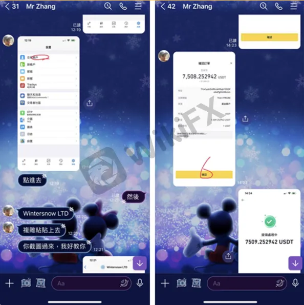 受害者按照網友的指示下載了Winter這平台的APP,並透過加密錢包儲值了7508USDT,之後幾次跟單操作確實都有些許獲利,而且申請出金也有順利領回,便逐漸對這平台卸下了防備,甚至向銀行貸款,投入比之前更多的資金。