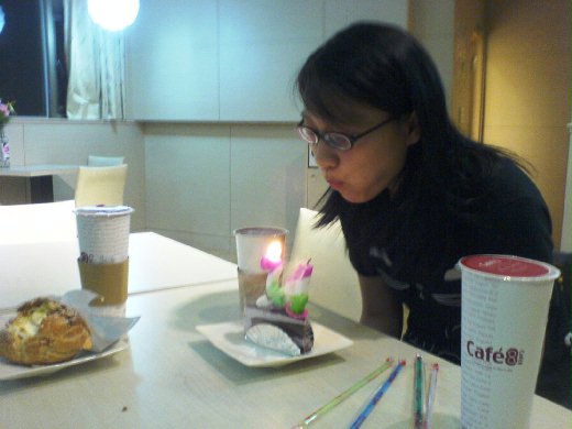 圖一:蠟燭比蛋糕大~XD感謝小A跑去跟店員要來的蠟燭!!