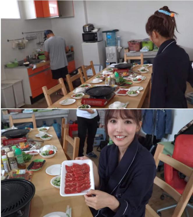 ▼其實三上悠亞現在穿的衣服已經超級露了,基本上youtube是不能露點點的,所以全程都用袍子包緊緊,然後用餐完就是小瞇一下