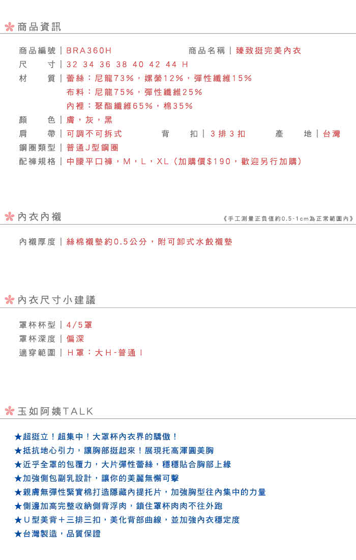 尤其這一款【玉如阿姨】臻致挺完美內衣※0360灰(H罩-大罩杯-全包-重機能-包覆-臺灣製)的材料非常不錯。兼具內衣的品質和舒適性。