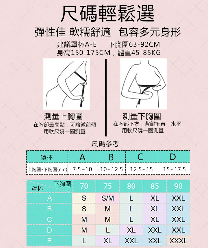 內衣有A/B/C/D/F/E幾個等級,根據胸部的大小來選擇。A杯或者AA杯大多是少女期剛開始發育輕微的隆起