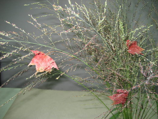 楓葉荻花秋瑟瑟─節錄白居易詩 與友人遊花蓮太魯閣勝景歸來 雖懊惱台灣政治亂象讓人煩心 但還是慶幸生長居住 在這美麗ㄉ寶島 有如此讓人引以為傲贊嘆ㄉ美景。 路上撿了幾片楓葉 楓樹雖未全紅 但一葉知秋 何況加了三四片又配了荻花 該是一個秋意十足ㄉ作品了吧!