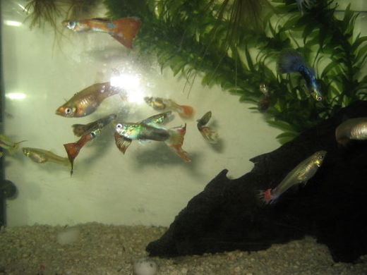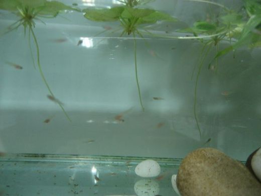 愛不管對人或物 都不可太超過 太過了就害了它 人们常常會對可愛無邪小孩或動物溺愛 話說我家金帥哥和大眼妹 不是才剛過著快樂日子嗎!看到它们 圓滾滾又愛吃ㄉ模樣 非常可愛 禁不住 一天 就 多餵了幾次 突然發現 金帥哥沉在缸底不動 樣子就像人肚子痛時抱著肚子蹲在地上痛苦ㄉ樣子 叫它也不動 真是讓我慌了手腳 不知怎麼辦 只好上網求救兵 應該是養魚ㄉ人常犯ㄉ毛病 吧!很快就看到有人建議 用飼料泡優酪乳餵食 心想不是騙人ㄉ吧! 雖半信半疑 也只好如法泡製ㄝ! 還真正有效ㄋ 沉了缸底大半天ㄉ「金帥哥」 吃了泡優酪乳ㄉ飼料不到一個小時很神奇就恢復正常了 非常感謝這位魚神醫 但事情還未了吶 !心想祕方那麼有效也給 「大眼妹」 多吃一些可能胃腸會比較健康點 貪嘴ㄉ大眼妹搶食ㄉ兇咧 一口氣就吃下幾粒 突然間像中邪般不停扭動身軀快速竄游翻肚 被嚇ㄉ再急速上網去找醫師 這次就沒那麼幸運找到祕方 只講說倒游翻肚是吃太撐 急性腸胃炎 沒有解藥 眼睜 睜ㄉ看它痛苦快掛ㄉ樣子 真是後悔莫及 愛它反而害它 祈禱若有以後再也不敢亂餵了 整夜就忐忑不安度過 天亮後急忙到書房看看 還好大眼妹安然渡過了危險 不然害金帥哥失伴侶罪過就大了 (再秀一下另外ㄉ魚兒家族-孔雀魚 前幾天為麗琴家ㄉ兩隻魚媽媽 接生了60幾隻ㄉ魚寶寶 健康活潑熱鬧ㄉ很 快成魚專家了ㄝ)