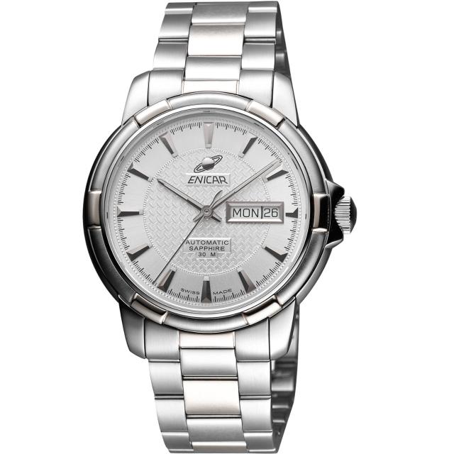 告訴大家我最近看到的【ENICAR】航行經典日曆機械腕錶-銀/41mm(168-50-335aA)其實我一開始對它最不感興趣,第一眼看起來沒感覺,但有一天去試戴後以後立馬轉換人格 (哈哈哈),款式很有個性,真的是只有親自戴上才能品味到它的獨特吸引之處。