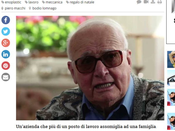 根據《Varese News》報導,這名義大利的企業大亨皮埃羅‧馬基(Piero Macchi),他在1957年創立了生產瓶蓋、軟木塞與瓶裝飲品標籤的Enoplastic公司。他在去年6月辭世,他在生前立下遺囑,將會從遺產提撥150萬歐元(約新台幣5500萬元)分贈給Enoplastic位於義大利博迪奧洛姆納戈(Bodio Lomnago)廠區中的280名員工。