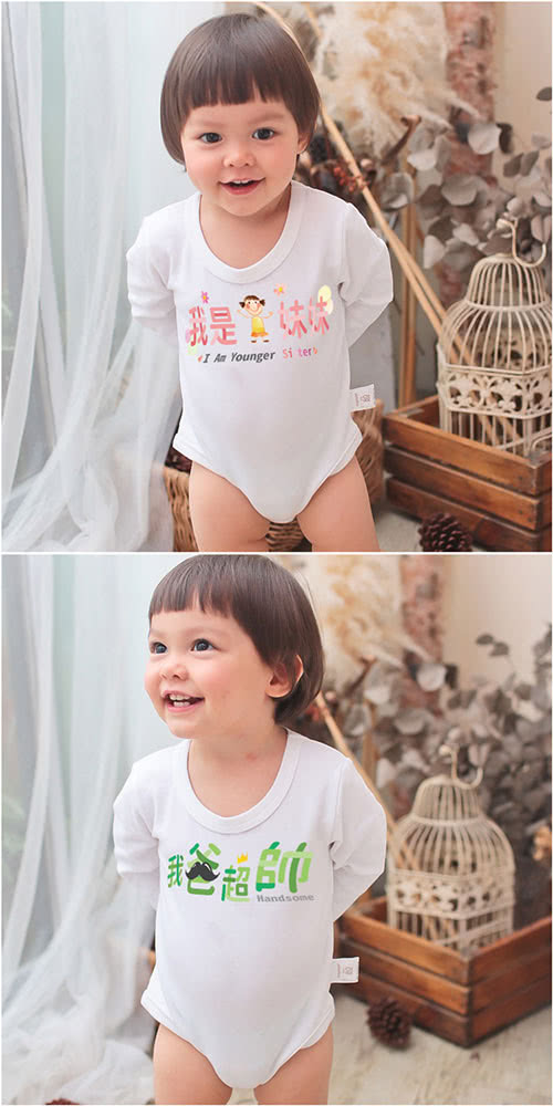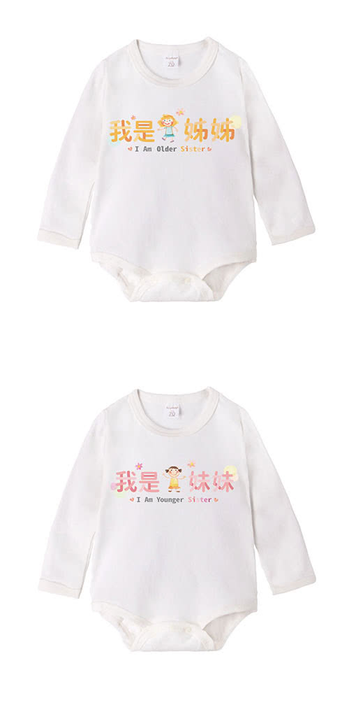 雙11特惠活動,搶到賺到:【Baby童衣】任選 獨家趣味文字印花 純棉長袖包屁衣-白色 66317(我是妹妹)
