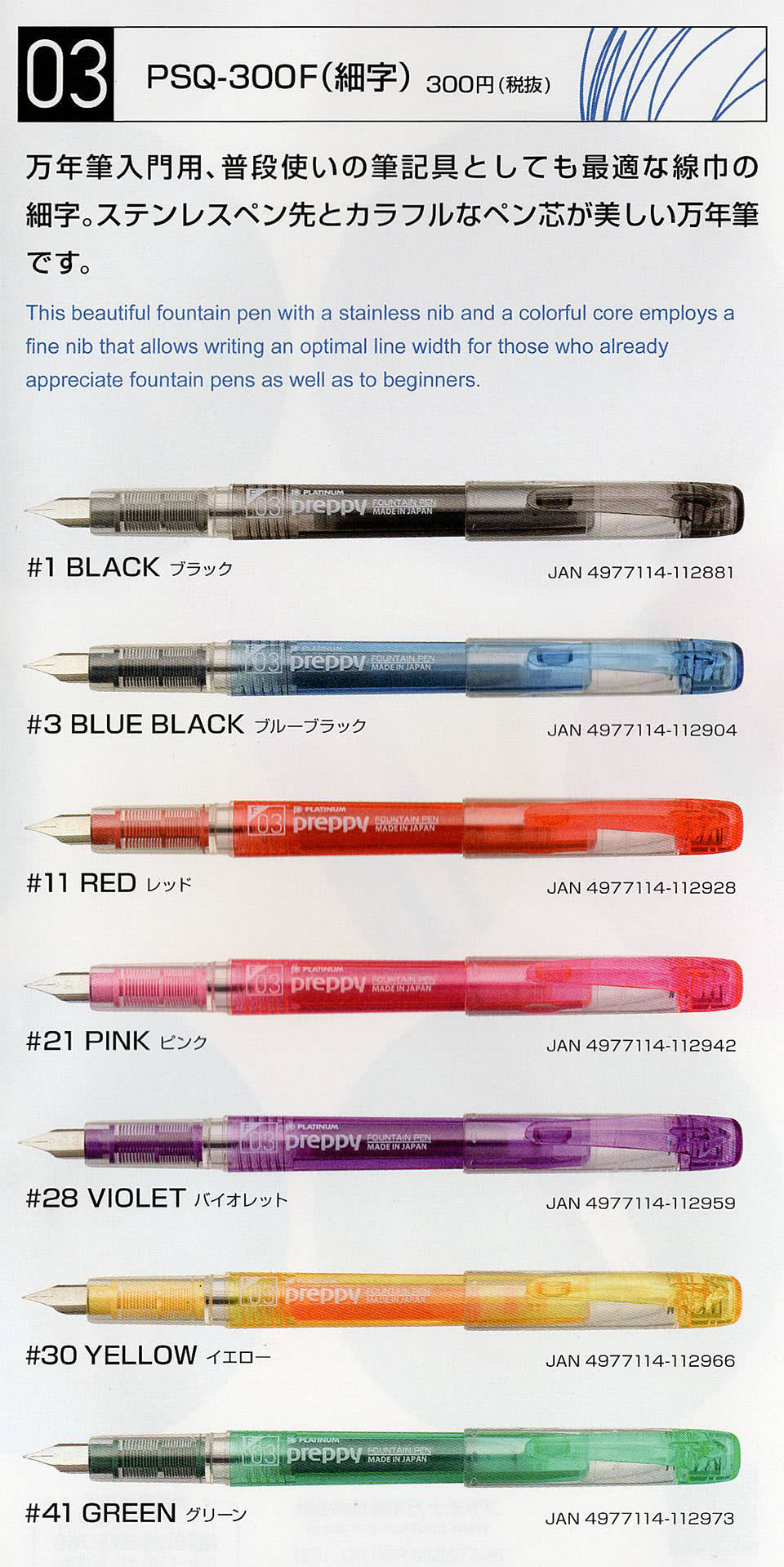 雙11特惠活動,搶到賺到:【PLATINUM白金牌】PSQ-300F preppy鋼筆-F細字(黃)