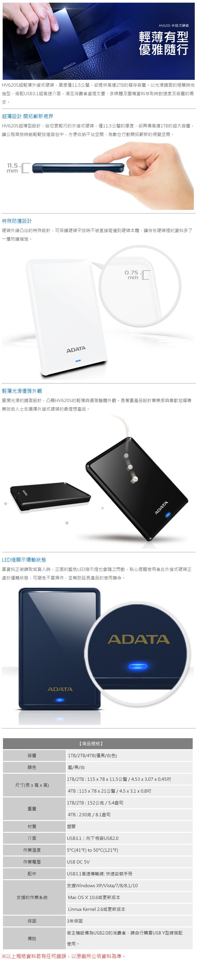 告訴大家我最近看到的【ADATA 威剛】HV620S 2TB 2.5吋行動硬碟(黑)不論是否需要攜帶外出使用,如果您不希望電腦周圍有一堆電源線纏繞、或是想要省空間的話,可以考慮入手一款。