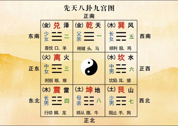 | 下\上 | 乾 | 兌 | 離 | 震 | 巽 | 坎 | 艮 | 坤 |