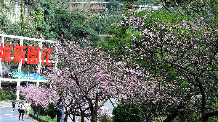 新北市》花園新城寒櫻初開 嬌豔繽紛