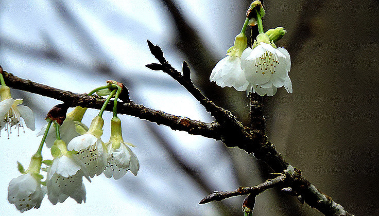 白花山櫻是緋寒櫻的白色變異種,又稱福爾摩沙櫻,日本命名為