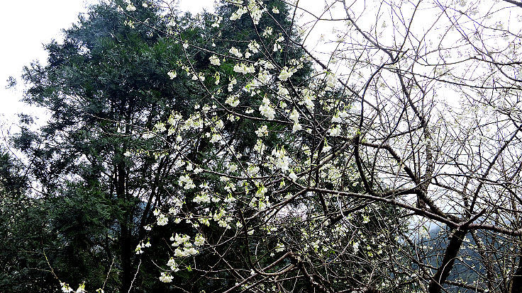 日前在南投信義鄉,也見芳蹤,冬的確還沒有走遠,櫻花卻開得如癡如醉。
