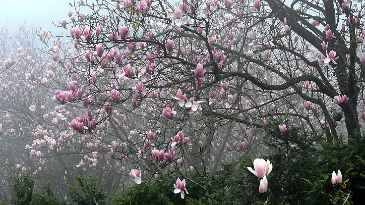 連續來此三年 第一年裡 左上的路線是爛泥 現已鋪上石階 好走很多 前年颱風過境 去年冬就開得不好 今年真是壯觀呢 愛唱 唐秋沙 於 2018/03/01 14:50回覆 - 4樓. Chen Mimi2018/03/01 11:00霧裡看花特別有意境。木蘭花壯麗,櫻花嬌媚,真是個讓人眼花撩亂的花花世界。真是不一樣的境界 其實藍天白雲的照片 到處都有呢 謝謝來訪 愛唱 唐秋沙 於 2018/03/01 14:47回覆