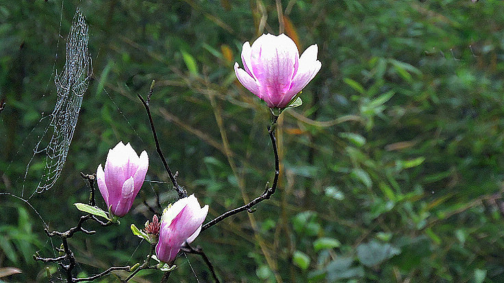 陽光是最棒的燈光師,祂躲起來一片霧濛濛,宛如仙境,祂稍稍給了一點亮光,木蘭立即化身為仙子,亮麗婉約。