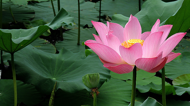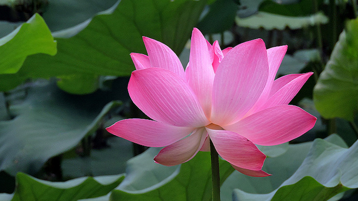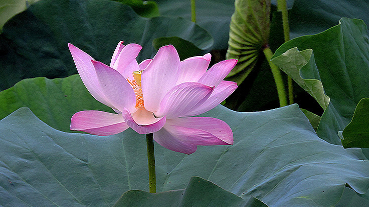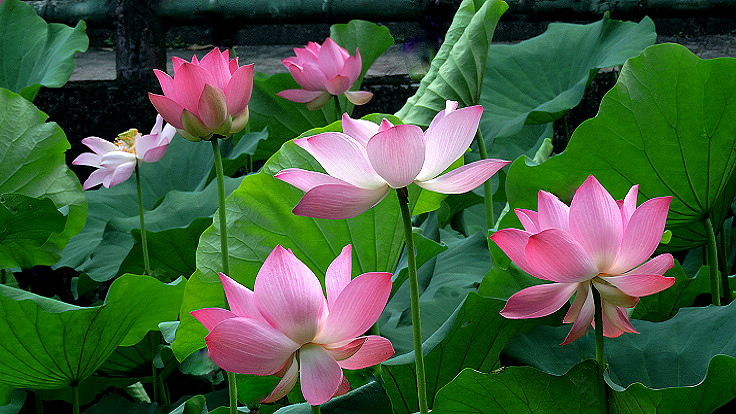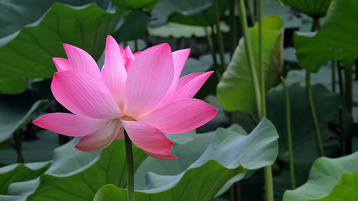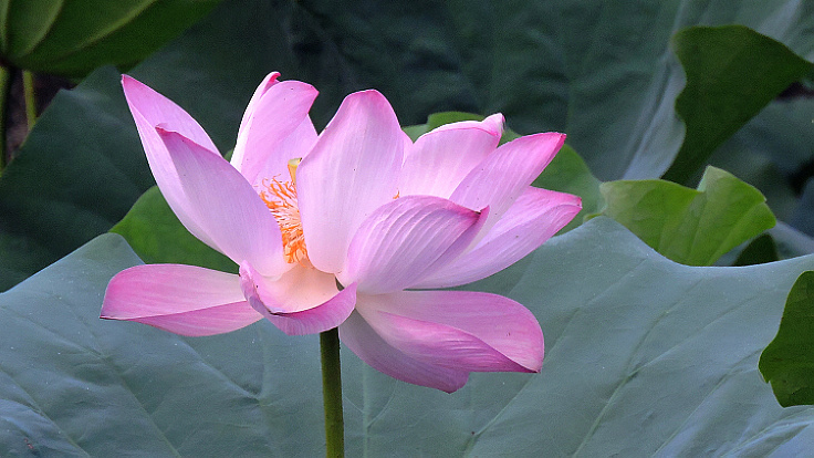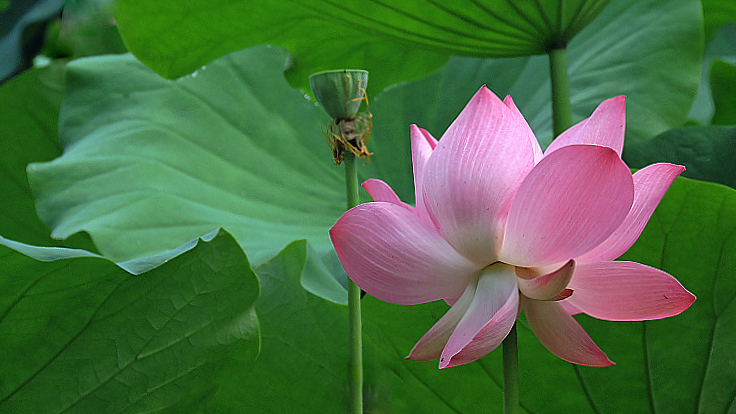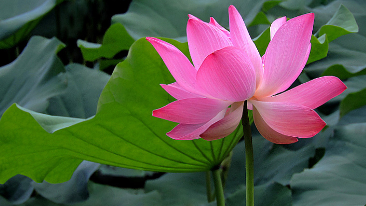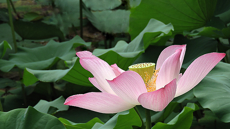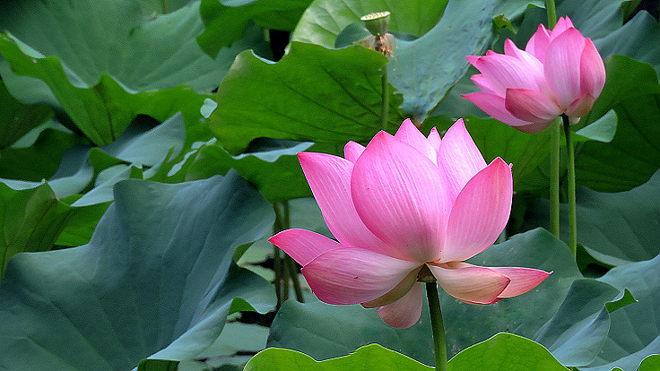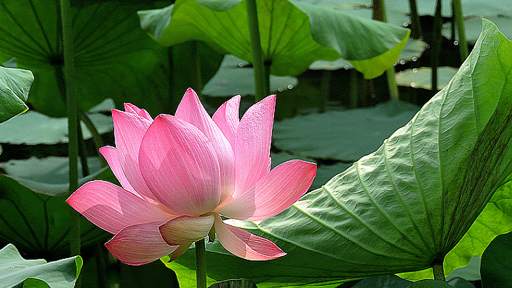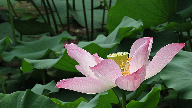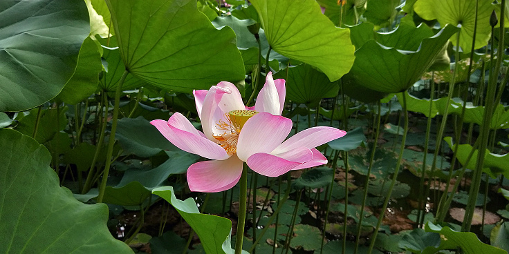 花開得很大,葉子也特大,又很乾淨,空氣清新,漂亮的荷塘,