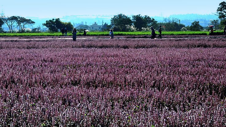 宛如薰衣草一般的紫色仙草花海,美極了。