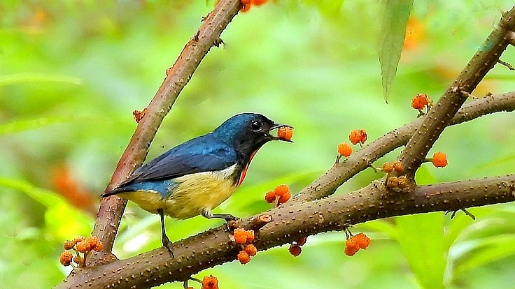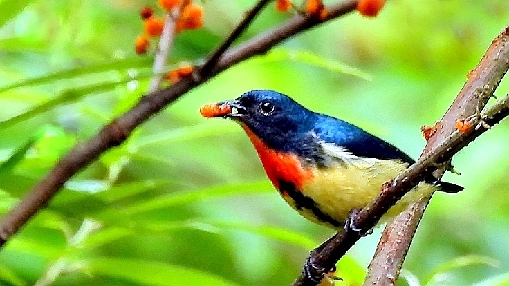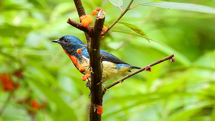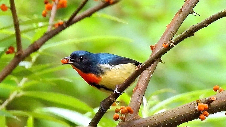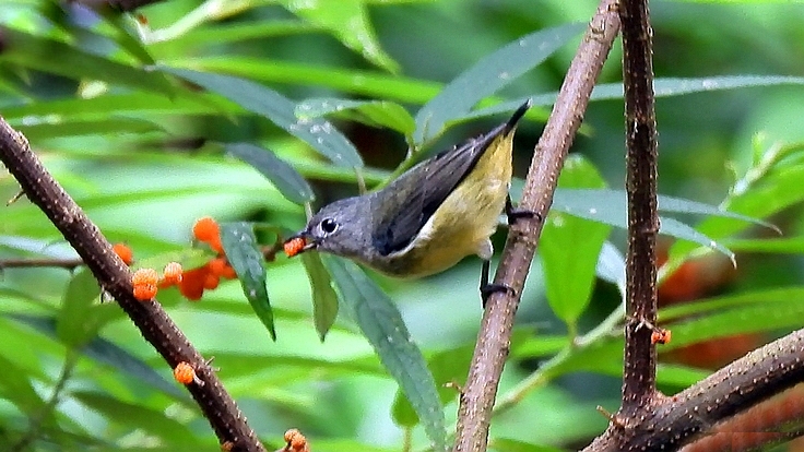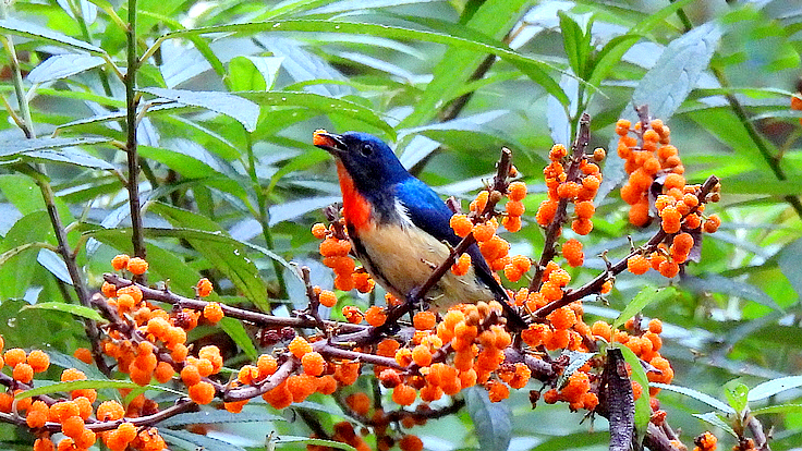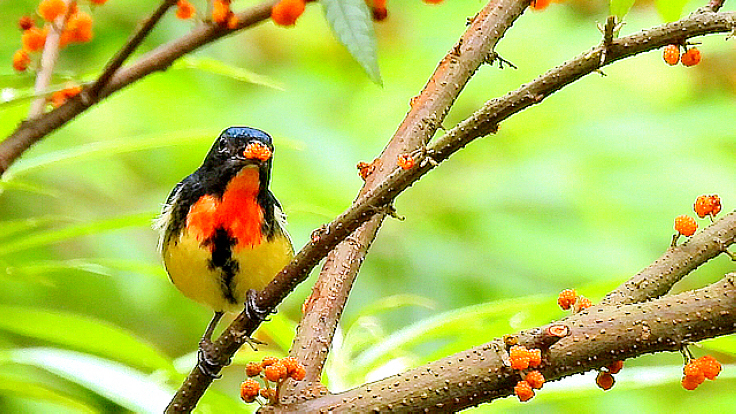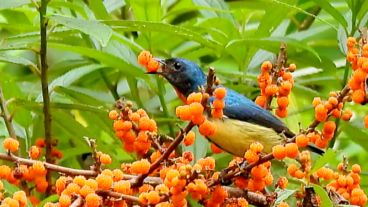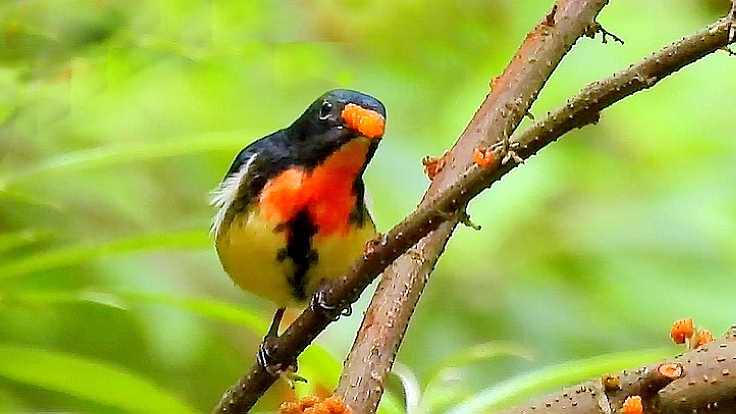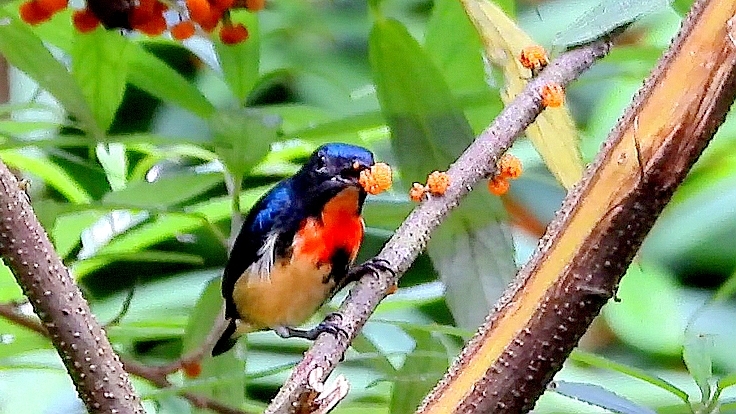 1:30後,烏雲遮陽,紅胸啄花頻頻登場,一嘴吃兩顆水麻,2、3分