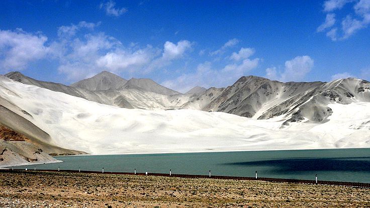 喀拉庫勒湖沿著 終年積雪的最高峰 幕士塔格蜂群 世界第二大高峰