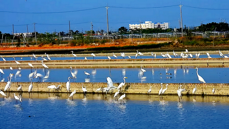 南部的藍天碧水襯托冬候鳥,讓人不覺已入冬寒。北部入冬,則陰霾多。