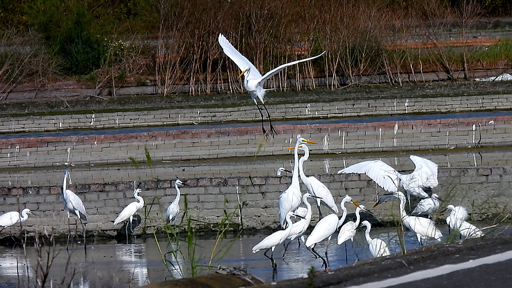 還是先整理群聚水田的大小白鷺絲,熱鬧頻頻,且觀賞且拍攝,