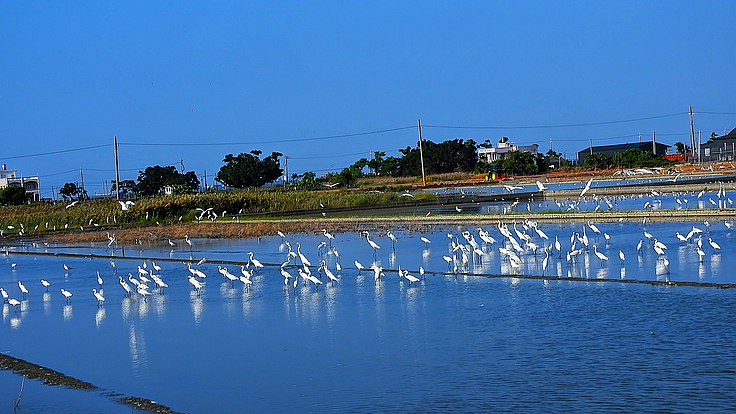 三天浸潤在空曠連天的幾塊水田裡的水鳥,覺得世界好美。