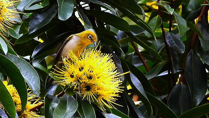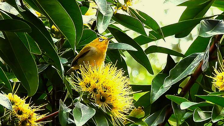 在植物園的黃金蒲桃也巧遇綠繡眼。