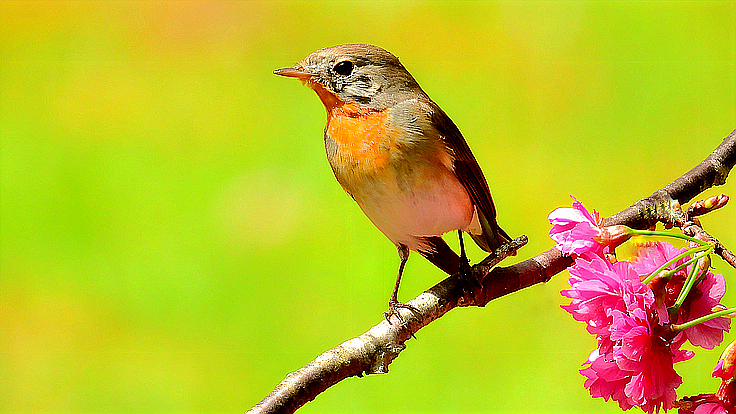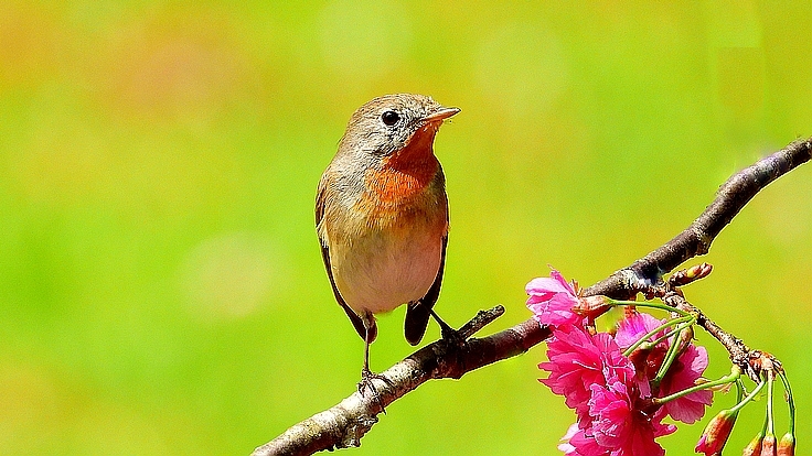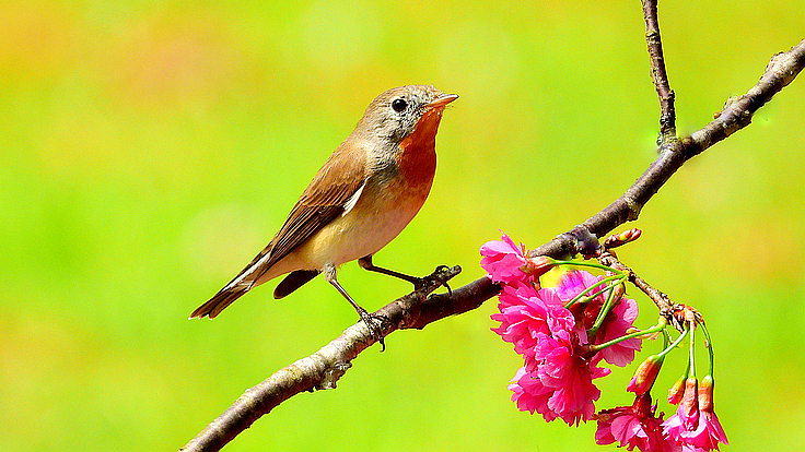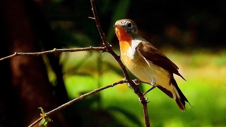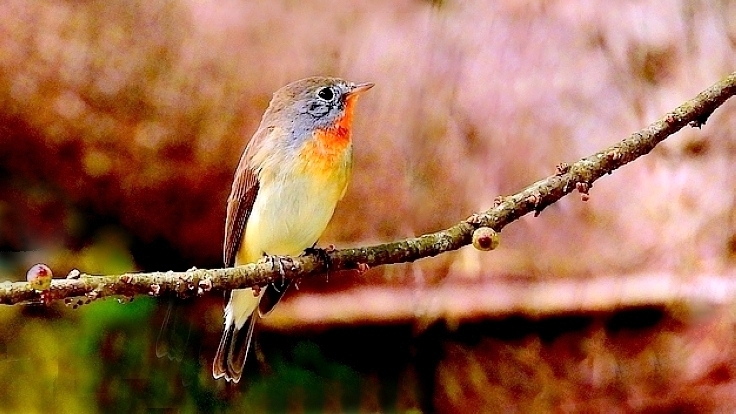 「紅胸翁」,身長約13 公分,獨特的小型鶲,第一次拍攝。