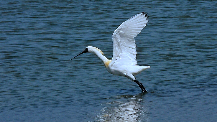 不見去年新塭成群黑面琵鷺盛況 只見兩隻已有繁殖羽的黑面琵鷺